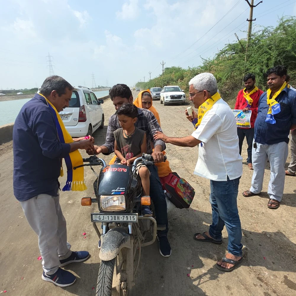 A rose of AAP: Narmada canal bridge closed, diversion also damaged, rose was given to applaud the patience of pedestrians