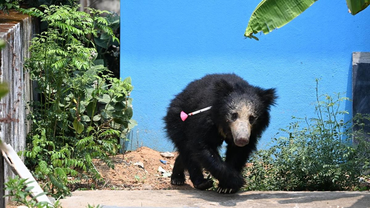 Sloth bear captured near Shivamogga airport in Karnataka by Forest Department