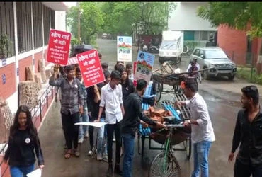 Vadodara, July 15, 2023, SaturdayAfter the renovation of the historic building in the Arts Faculty of M.S. University, the faculty campus is not only looking bad, but the students are also suffering.As no action was taken to remove the debris even after making a representation in this regard a week ago, the student body Yuva Shakti Group today protested separately to remove the laziness of the authorities. The students today reached near the dean's office with debris in a two-legged rickshaw and dumped the debris there. The protest by the students also led to a ruckus in the faculty. A number