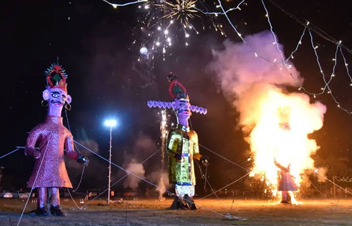 Vijayadashami Celebration: Dussehra, the festival of the victory of divine power over demonic power, was celebrated with great pomp in Ahmedabad, Rajkot, Surat, Kutch and Gandhidham on Thursday (October 2). On this occasion, Ravana was burnt in a traditional manner in different areas.